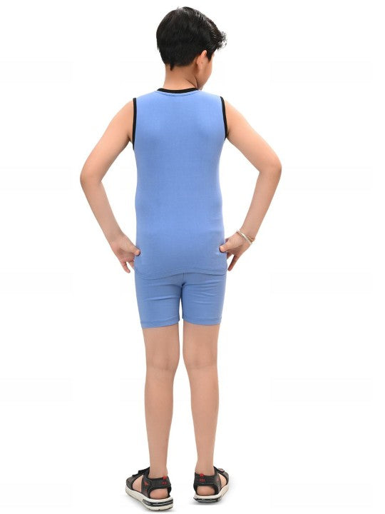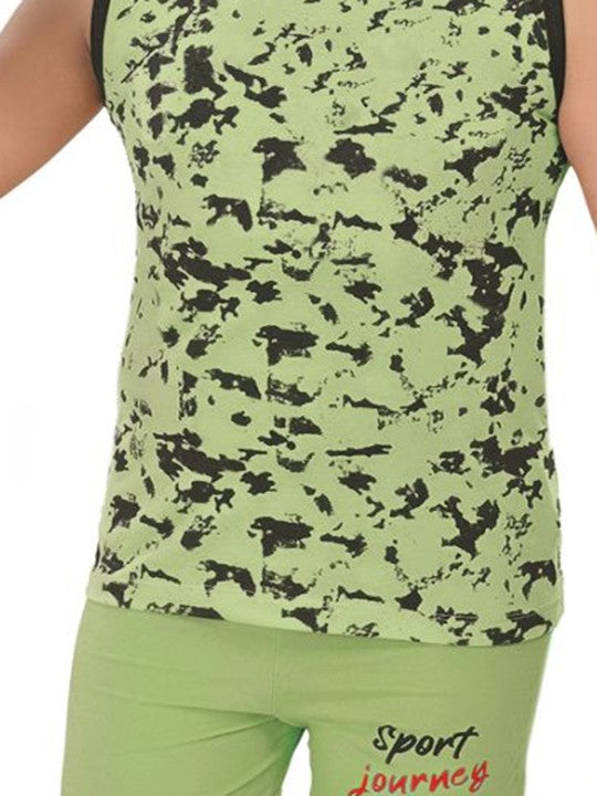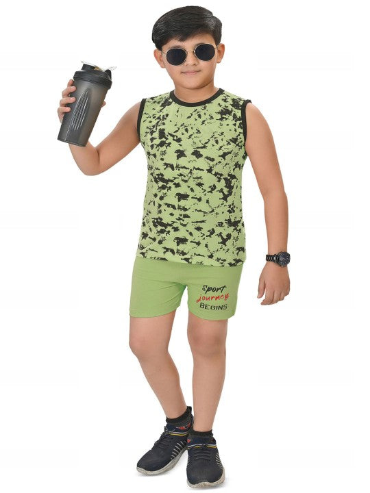 This clothing set consists pack of 2 T-shirt and Shorts Blue and green printed t-shirt ,has a round neck, sleeveless Blue and green printed shorts ,has a slip-on closure