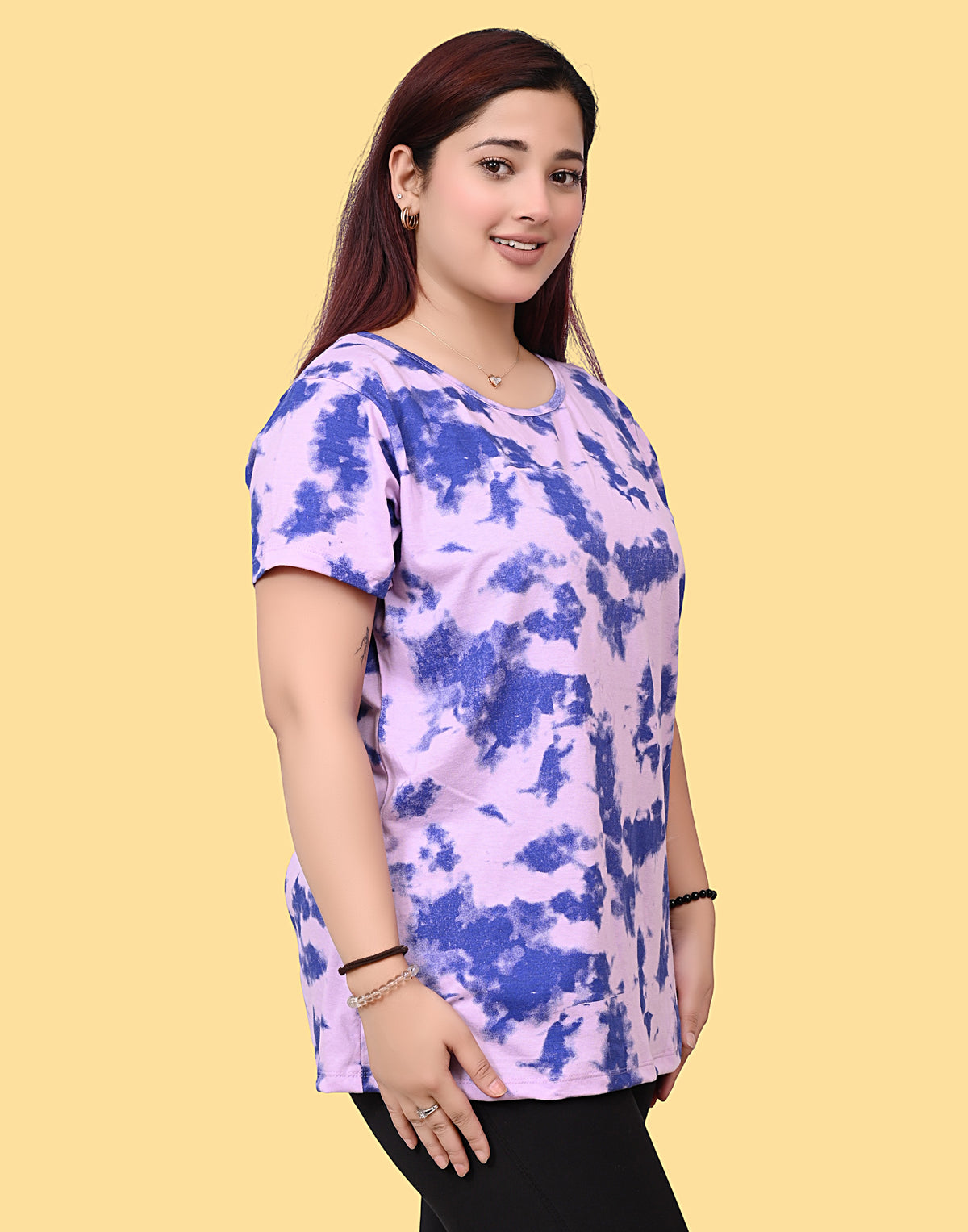 Make a statement with this vibrant blue and pink abstract graphic T-shirt from India Fashion Fab. Crafted from soft, breathable cotton, this tee is perfect for casual outings, summer errands, or weekend lounging. The bold abstract design adds an artistic flair to your everyday look.
